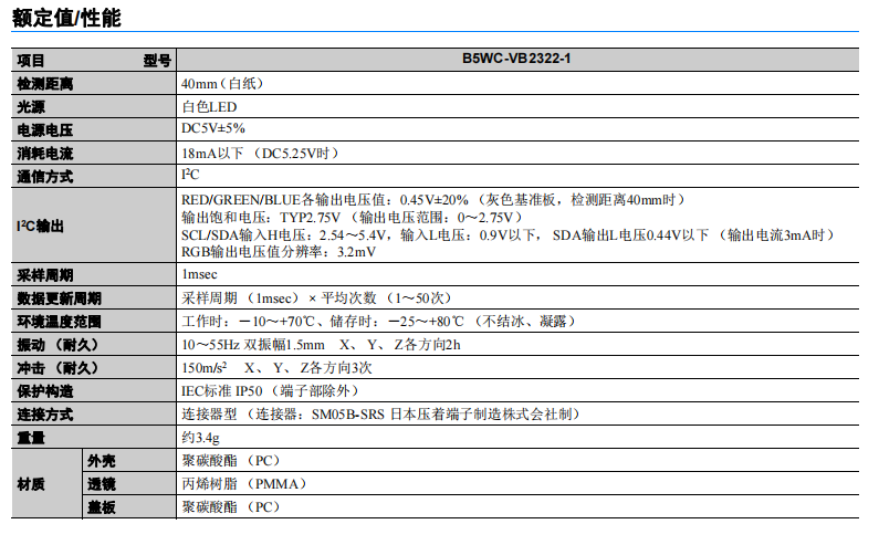 • B5WC 顏色傳感器