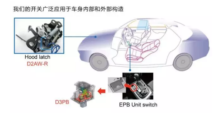看點四:帶自動故障診斷功能電阻內(nèi)置微動開關D2AW-R與電子駐車系統(tǒng)操作開關D3PB