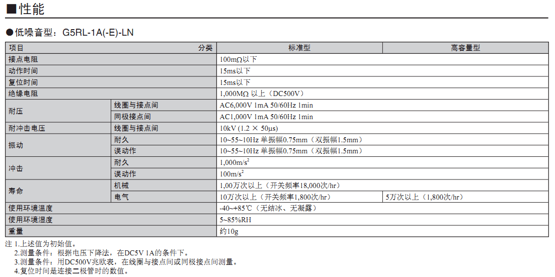 ? 備有低噪音型(比標準型G5RL繼電器的聲壓低約10~20dB)