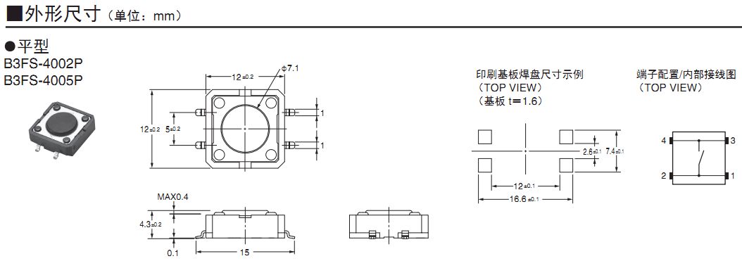 歐姆龍輕觸開關(guān),B3FS-4002P,歐姆龍輕觸開關(guān)B3FS