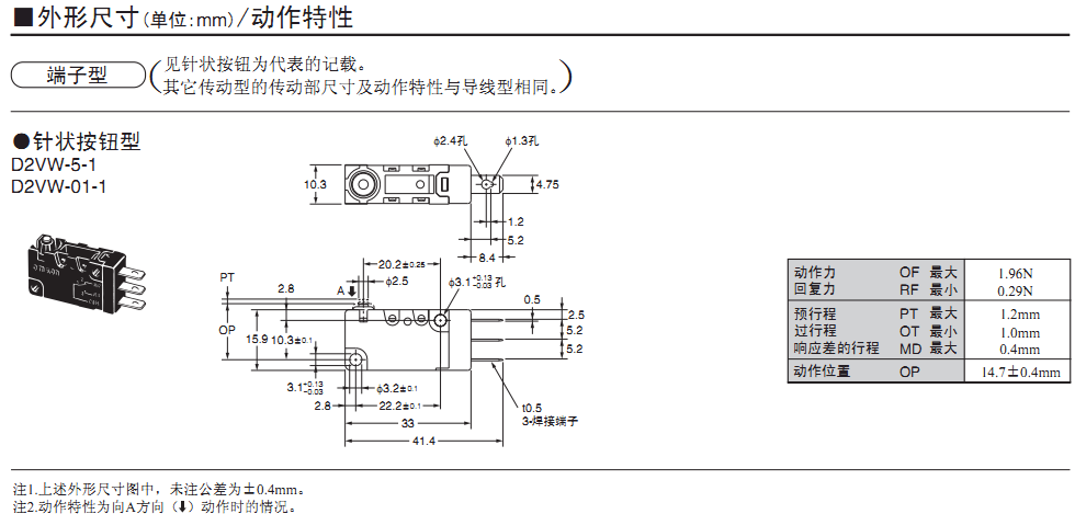 D2VW 密封型小型基本開(kāi)關(guān)