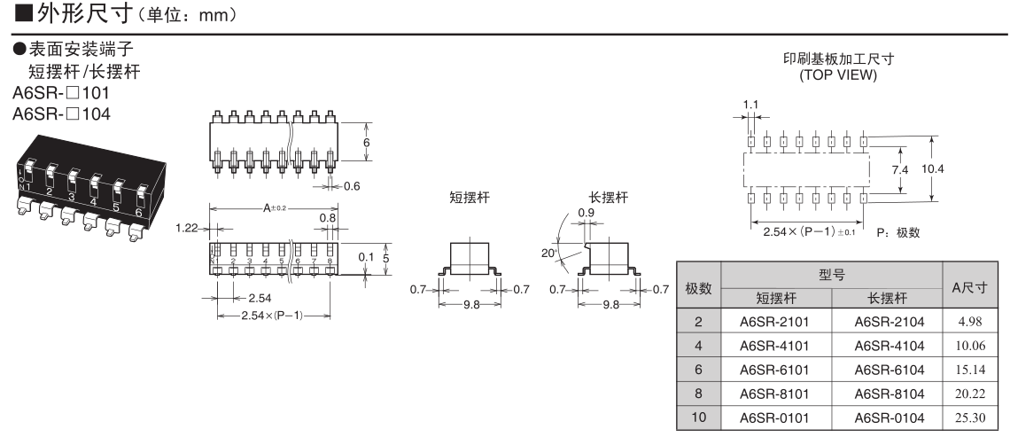 標(biāo)準(zhǔn)表面安裝琴鍵型撥動(dòng)開關(guān)