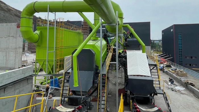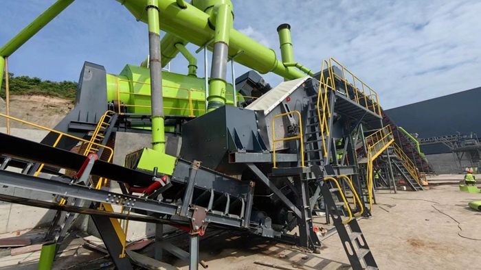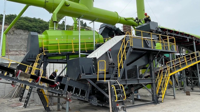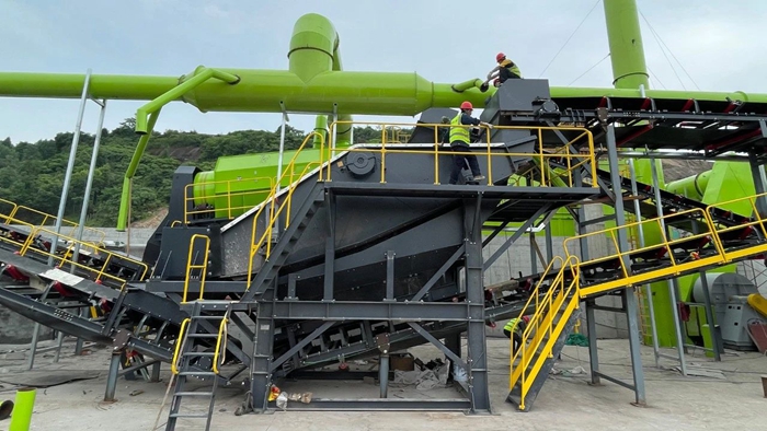 核心設(shè)備:鵝頸式輕型板喂機和中型板喂機,全密封輸送帶,負壓臥式風選機、階梯棒條篩、人工+智能化機器人聯(lián)合分揀平臺、雙軸撕裂機、除鐵器、除塵器等。